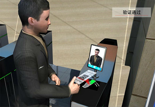访客或内部人员通过通道或门禁,由人脸识别设备对人员身份进行识别,识别正确联动闸机等设备开启,人脸识别具有唯一性,识别速度快,比刷卡、指纹识别等更加安全快速。